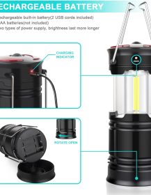 2 Pack Camping Lanterns Camping Accessories USB Rechargeable and Battery Powered 2-in-1 LED Lanterns, Hurricane Lights with Flashlight and Magnet Base for Camping, Hiking, Emergency, Outage